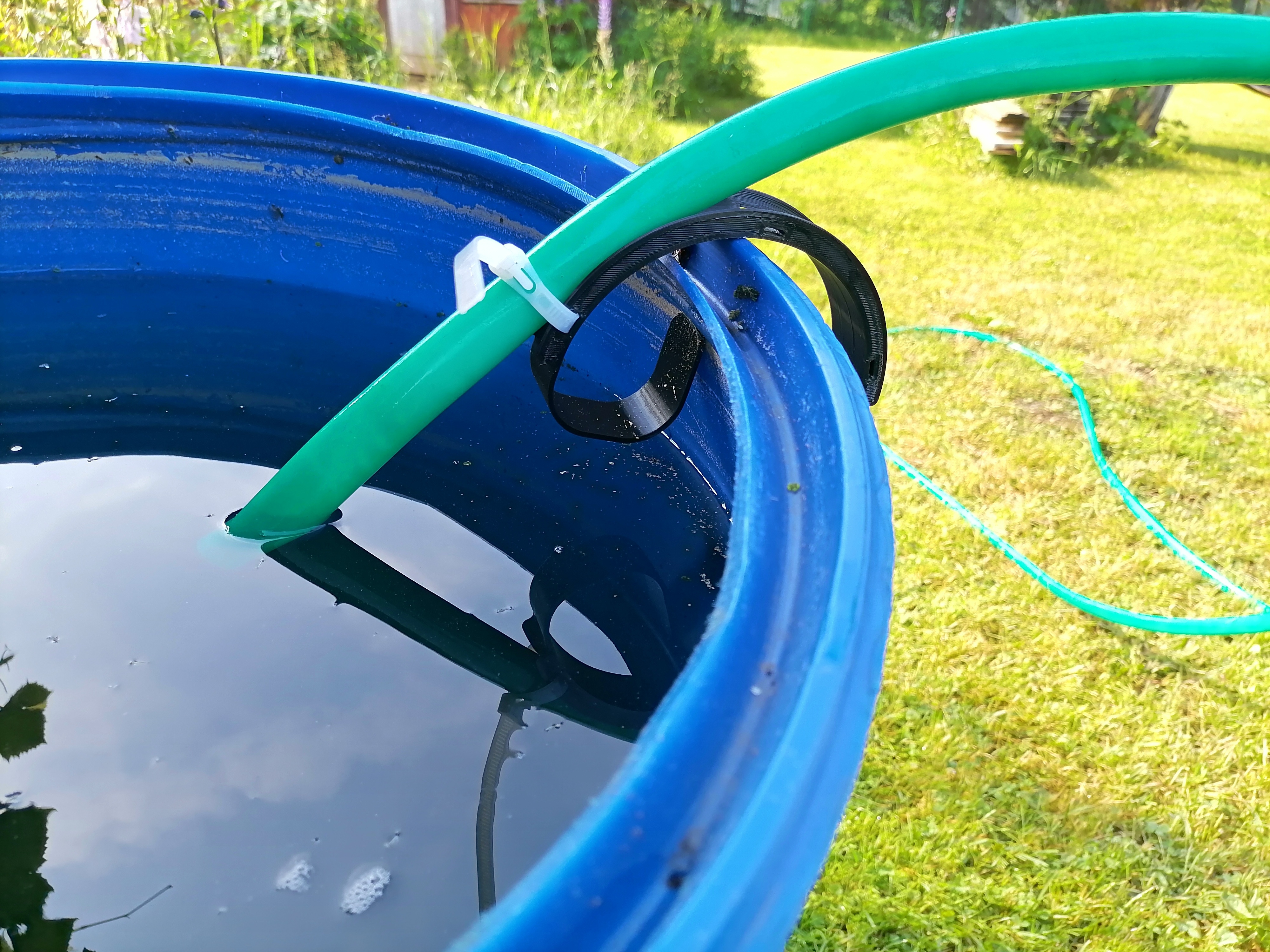 Держатель может быть применен для шлангов и ПНД труб с внешним диаметром сечения до 32мм. Применение держателя для более толстых шлангов и труб возможна, но устойчивость держателя на бортике бочки может не обеспечиваться.
